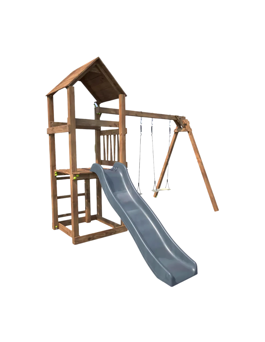 Aire de jeux en bois avec balançoire et toboggan – Nouméa