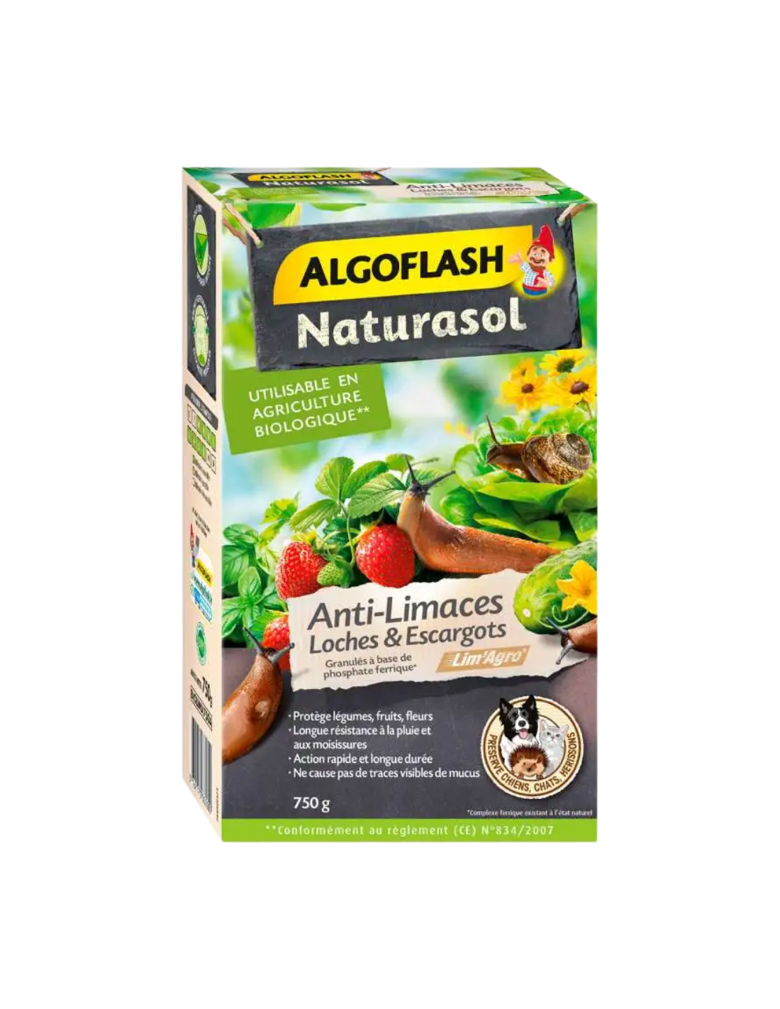 L’Anti-Limaces, Loches et Escargots 750g Algoflash Naturasol est un appât naturel, efficace et sûr pour protéger vos cultures et massifs des nuisibles rampants.