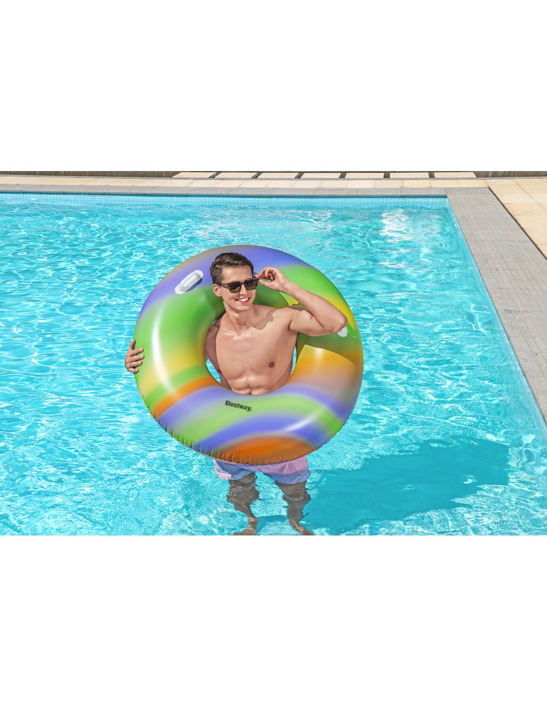Cette bouée colorée Bestway® Rainbow apporte une touche de couleur à l'été !