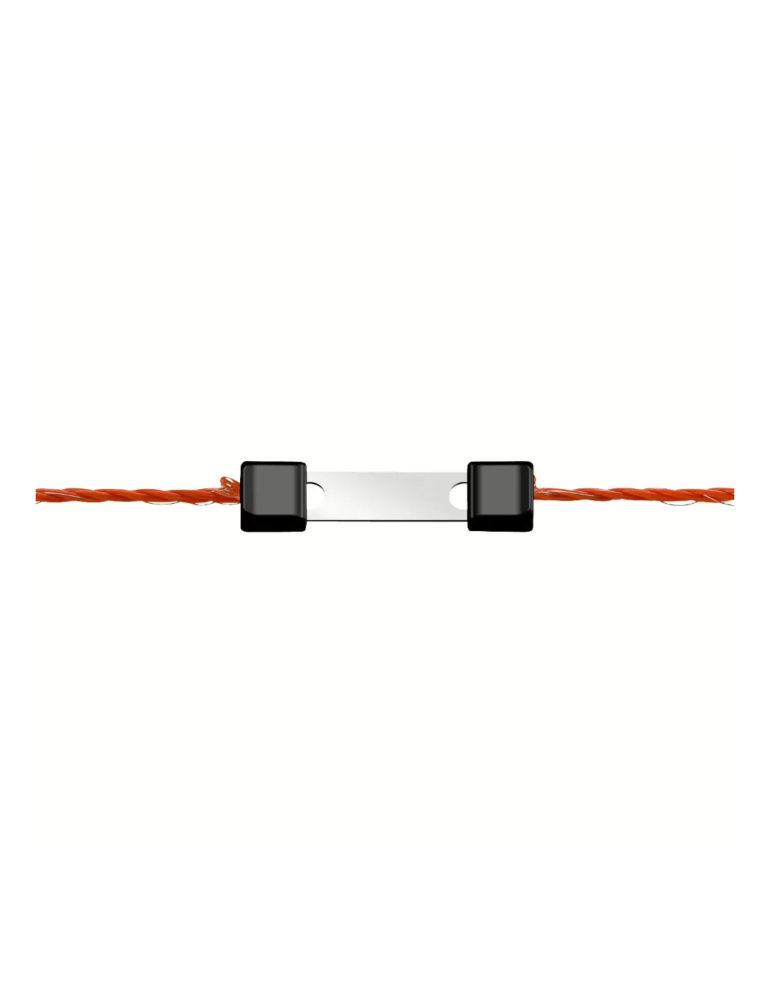 Le Connecteur HT inter-rubans permet de relier efficacement deux rubans de clôture électrique jusqu'à 40 mm de largeur sur une distance de 80 cm, assurant ainsi une continuité optimale du courant électrique.