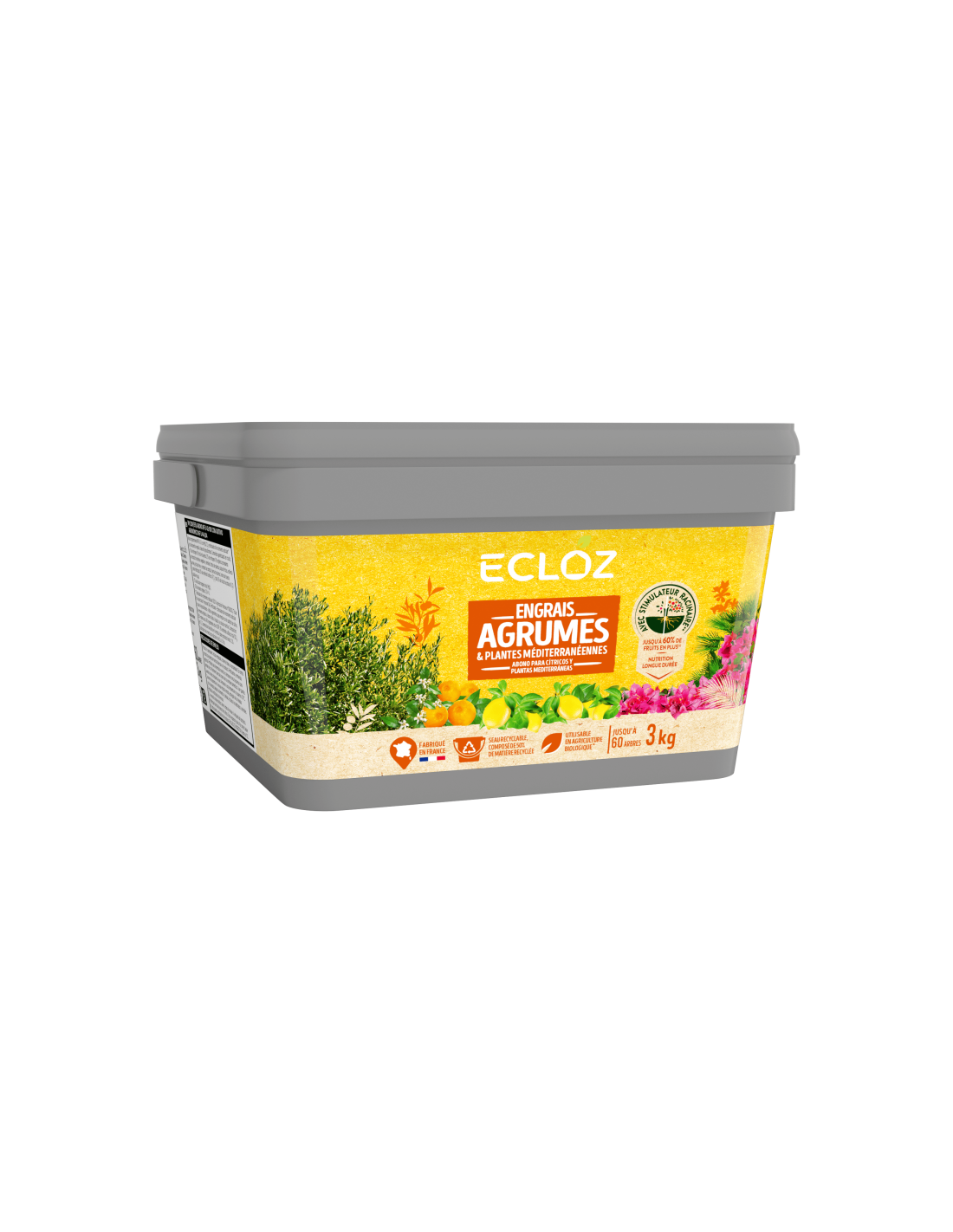 Le seau de 3 kg d’engrais Agrumes & Plantes Méditerranéennes Ecloz est une solution efficace, durable et écologique pour renforcer tes plantes, favoriser floraison et fructification, tout en adoptant une approche respectueuse de l’environnement.