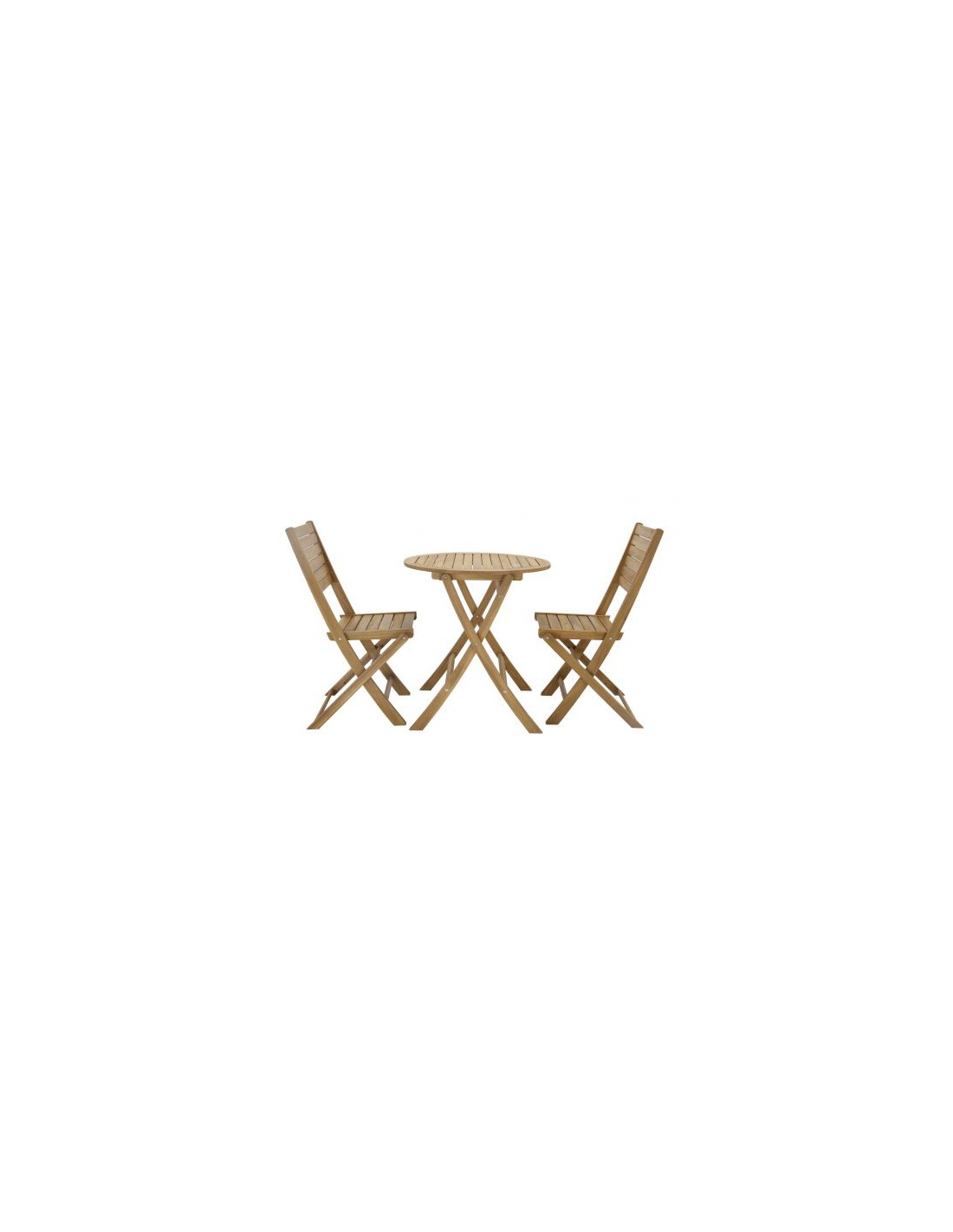 Celui-ci est composé d'une table ronde de dimensions Ø70 x H.75 cm et de deux chaises pliables.