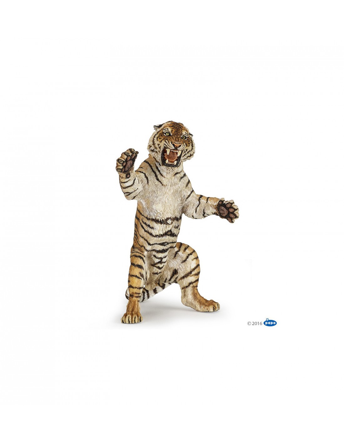 Il a fière allure le tigre mâle de Sumatra. Avec ses rayures, son regard, ses mouvements souples et félins, sa beauté fascine ! Symbole du courage, il règne en maître absolu sur son territoire. Originaire dAsie, ce mammifère carnivore imposant est le plus grand félin du globe. Il est facilement reconnaissable à sa fourrure orangée et ses rayures noires propres à chaque individu. Lorsquil chasse, ce redoutable prédateur se nourrit essentiellement de cerfs, de sangliers, de buffles et parfois même de crocodiles. Le tigre de Sumatra est aujourd'hui une espèce considérée comme menacée et est donc protégé.