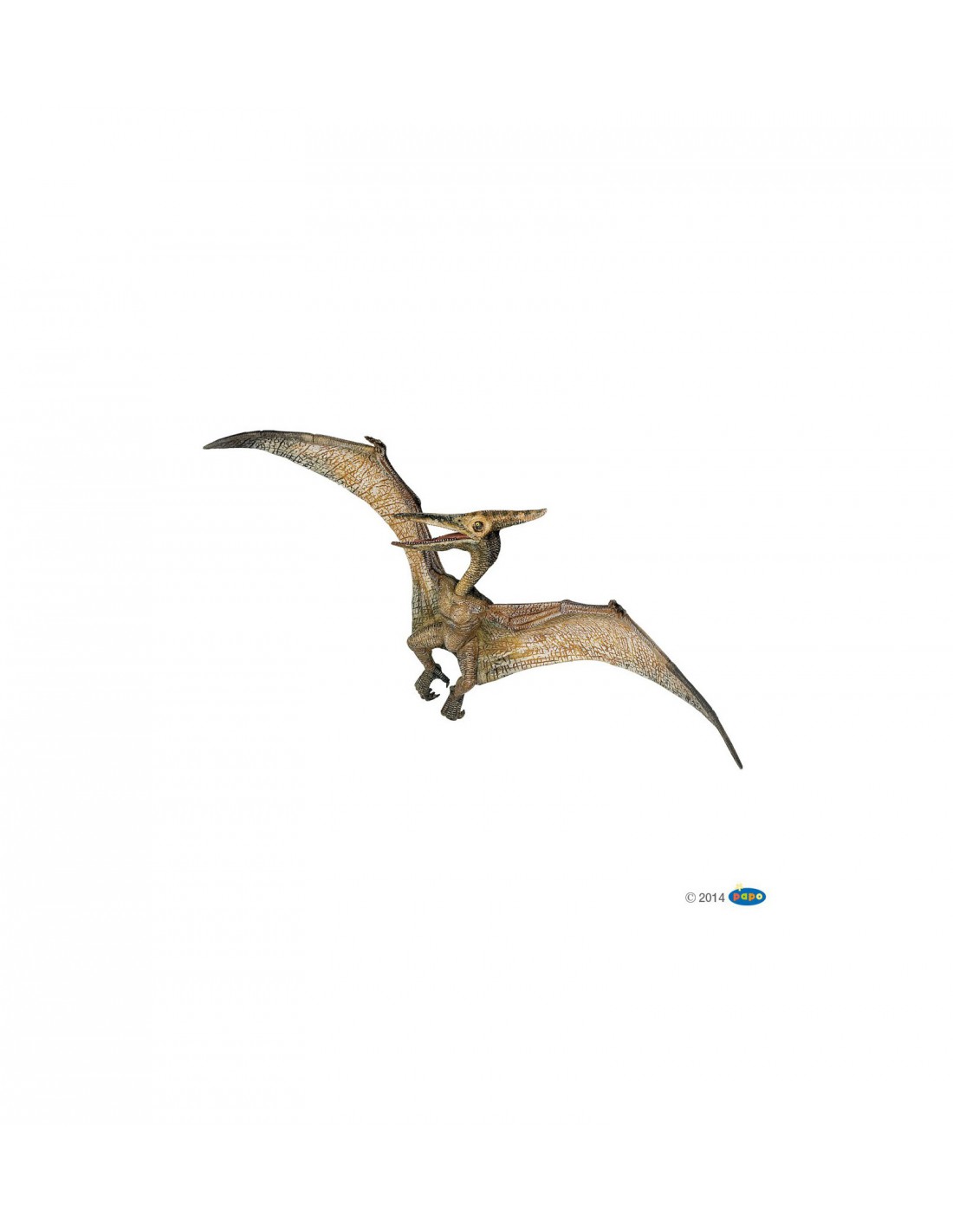Le Ptéranodon compte parmi les Ptérosaures les plus connus. Ce reptile volant vivait sur Terre au Crétacé supérieur, il y a 70 millions d'années. D'une envergure de 7 à 9 mètres, il se déplaçait en planant au dessus océans pour pêcher à la manière de nos pélicans actuels. Sa mâchoire est dépourvue de dents ce qui laisse entendre que ce très bon pêcheur avalait les poissons en entier. La crête sur sa tête contrebalançait avec son bec allongé et son squelette devait être léger en raison des os creux et fins de ses ailes.