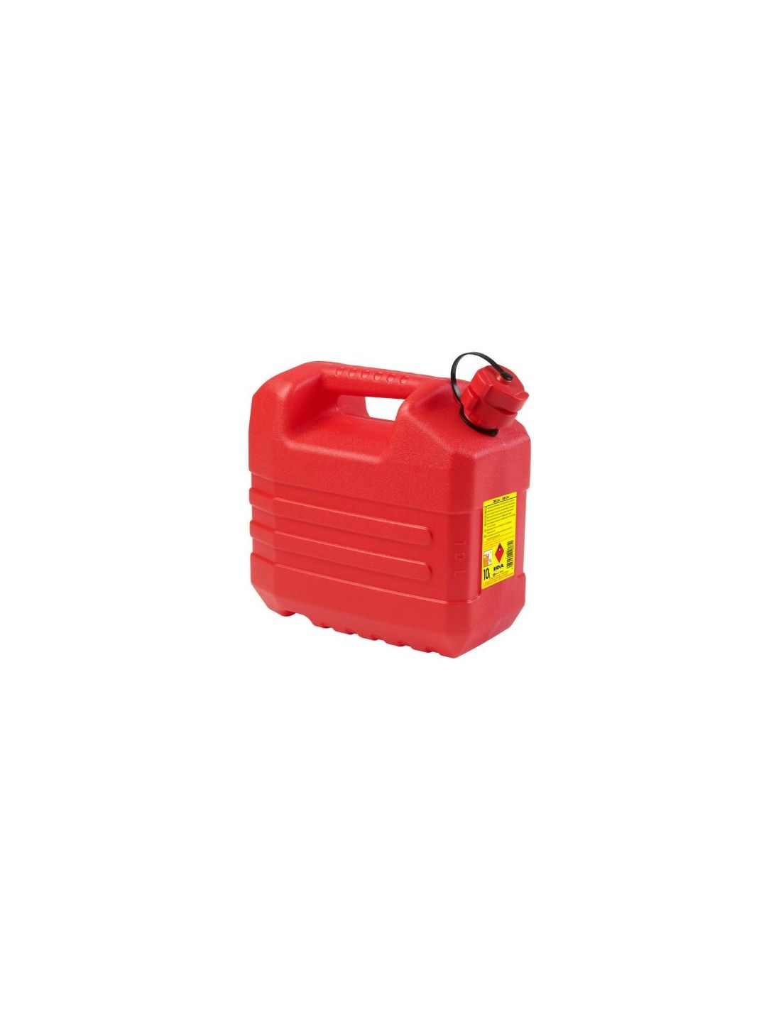 Jerrican plastique rouge pour hydrocarbure 10 L avec bec verseur rigide logé dans le jerrican, Homologué transport de produits dangereux (norme UN)