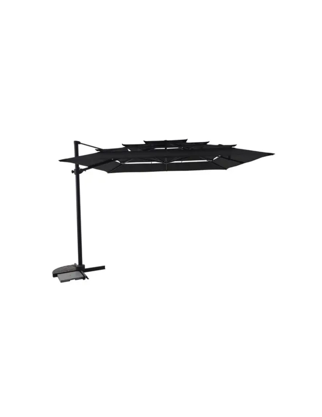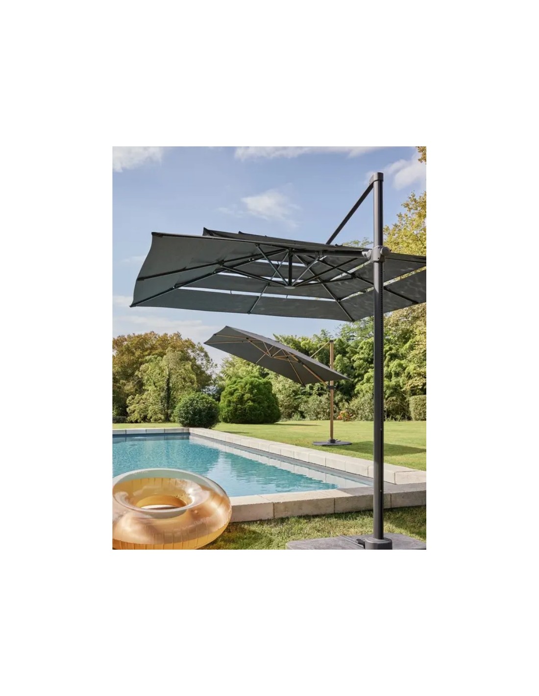 Le parasol déporté grand vent ÉOLE ECLOZ associe structure aluminium renforcée et toile polyester haute densité 220 g/m², garantissant stabilité et durabilité.