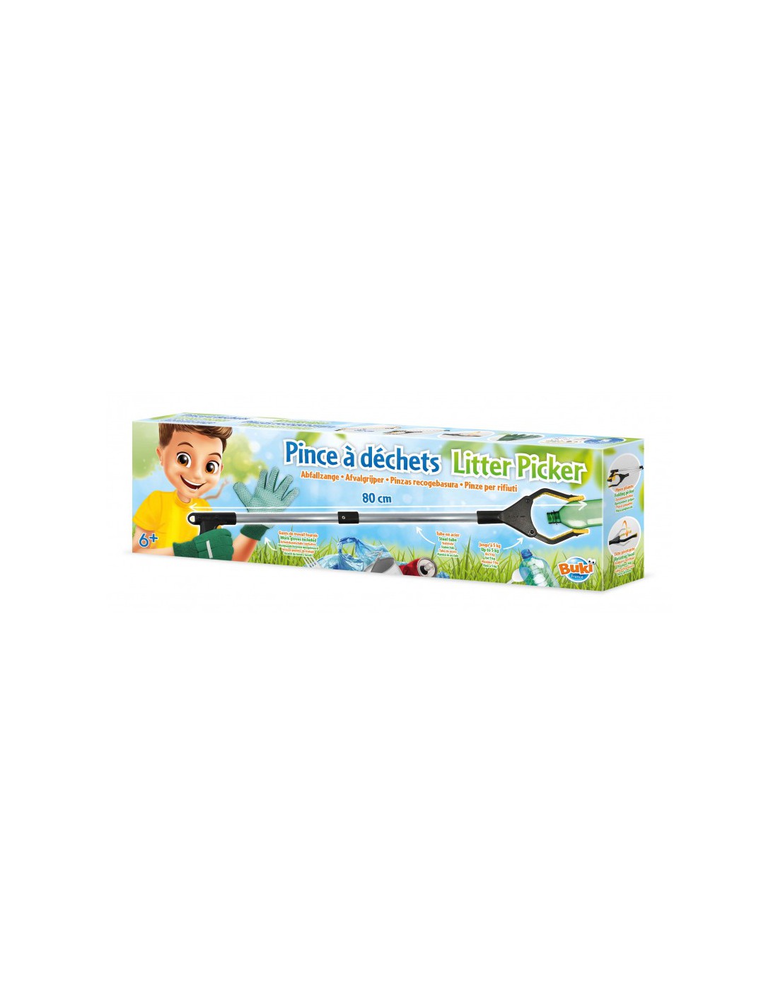 Avec la pince à déchets, participe au grand nettoyage pour préserver les espaces naturels.