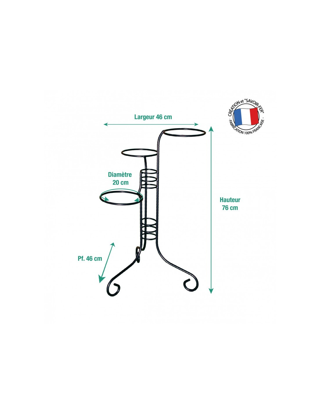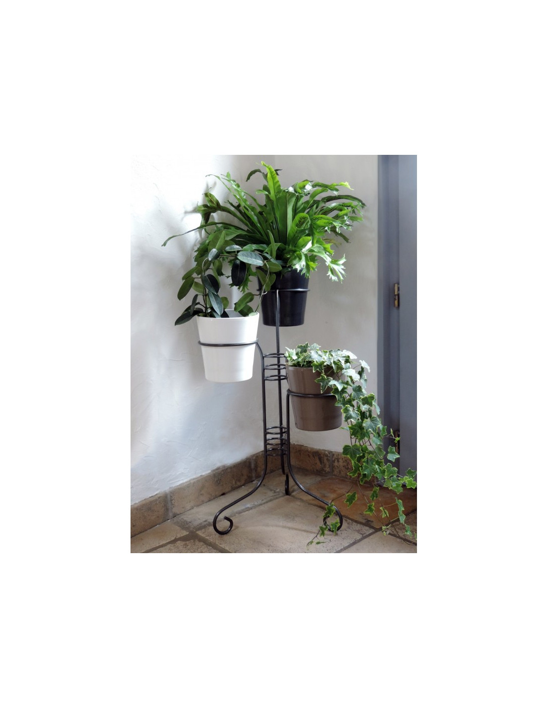 Porte plantes 3 pots en métal noir - H.76 cm.