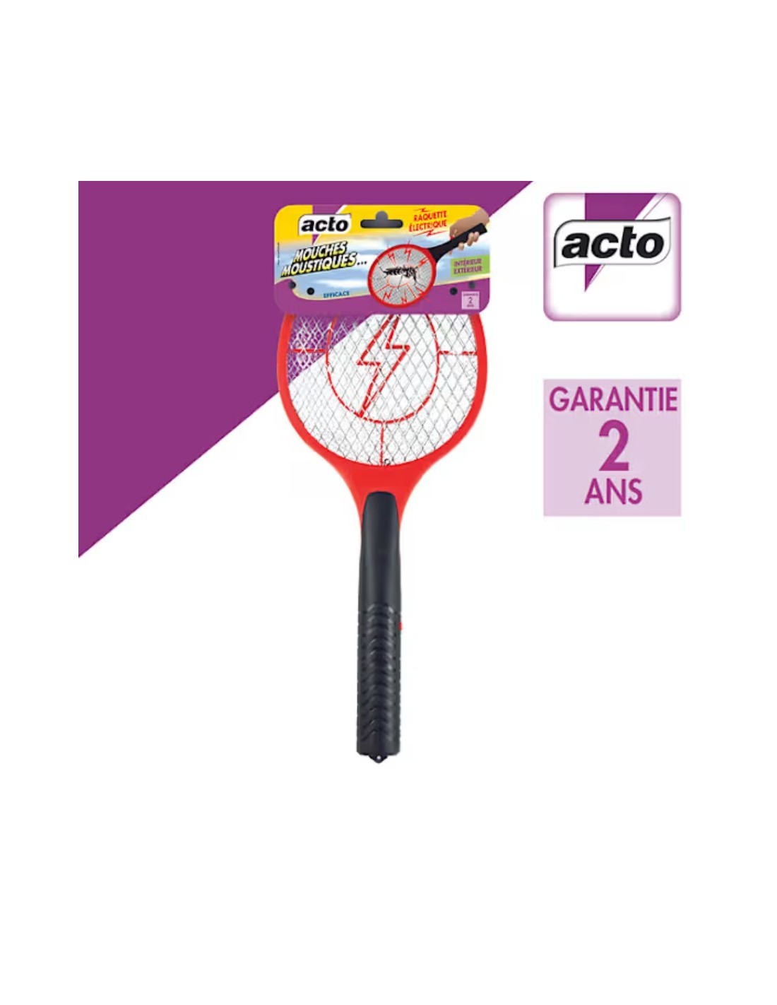 Découvrez l'efficacité redoutable de la raquette électrique ACTO contre les mouches, moustiques et autres insectes volants.