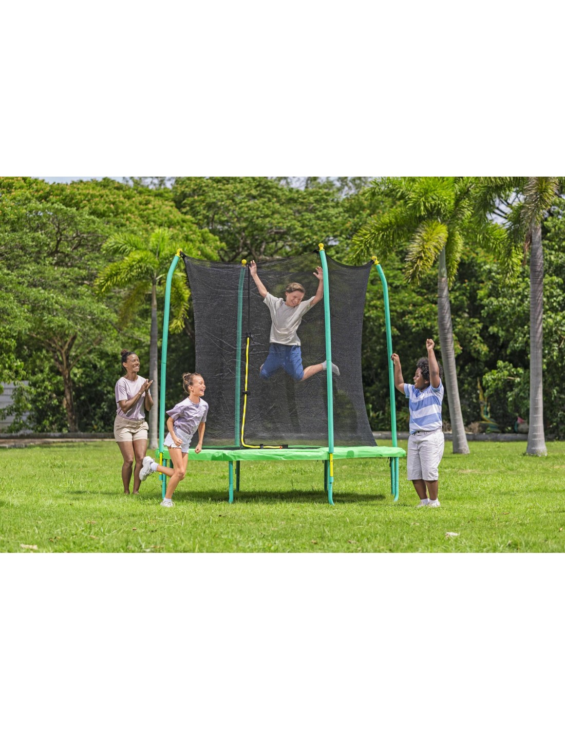 Doté d’un filet d’enceinte résistant aux intempéries, d’un tapis à ressorts et d’un tapis de saut, vous et votre famille aurez plaisir à vous retrouver autour du trampoline pour faire le plein de souvenirs.