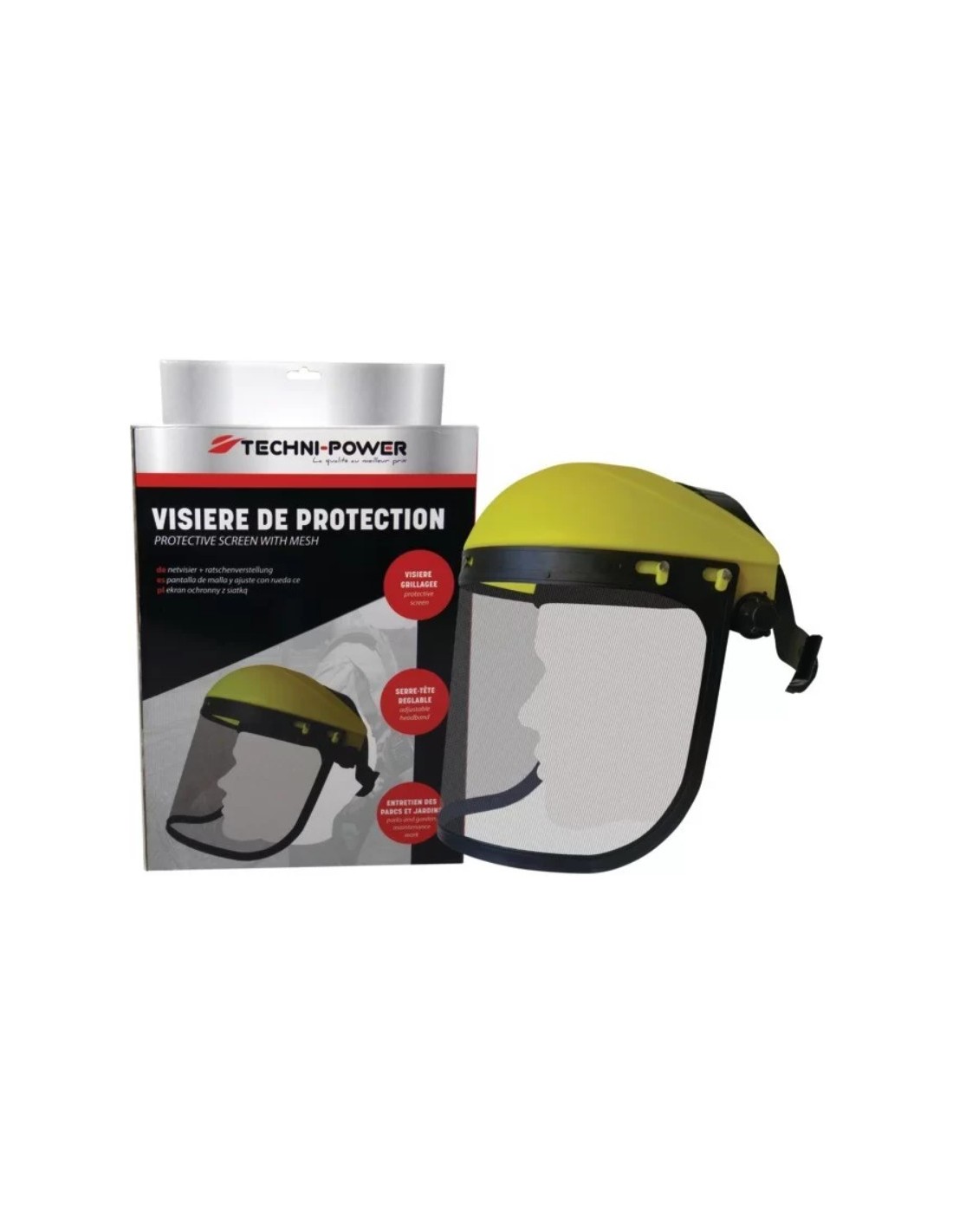 7Visière grillagée relevable avec serre-tête réglable par crémaillère. Utilisation : travaux forestiers. débroussaillage.